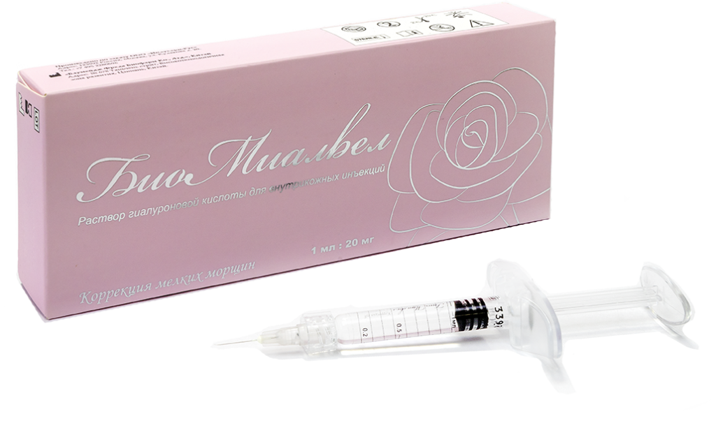 BioMialvel No1 – бифазный китайский филлер на основе гиалуроновой кислоты. Низкая плотность геля обеспечивает эффективное заполнение поверхностных возрастных морщин, а также контурную пластику губ и других зон лица.